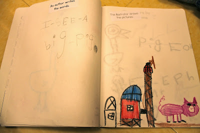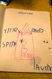 In Reader's Workshop we've been focusing on the parts of a book, authors, illustrators, and characters.